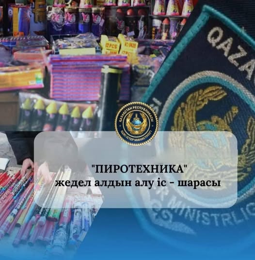 Қазақстан Республикасының «Азаматтық қорғау туралы» Заңына сәйкес, өрт қауіпсіздігін қамтамасыз ету қоршаған орта мен ұлттық құндылықтарды, азаматтардың денсаулығы мен өмірін, мүлкін қорғау мақсатында жаңа жылдың қарсы алу мен мерекелеу кезеңінде және азаматтық пиротехникалық заттарды пайдалану, сақтау және сату орындарында төтенше жағдайлар мен оқыс оқиғалардың алдын алу мақсатында, заңсыз рұқсатсыз пиротехникалық заттарды сауда саттық орындарда сатуға тиым салынатындығын ескертеміз.