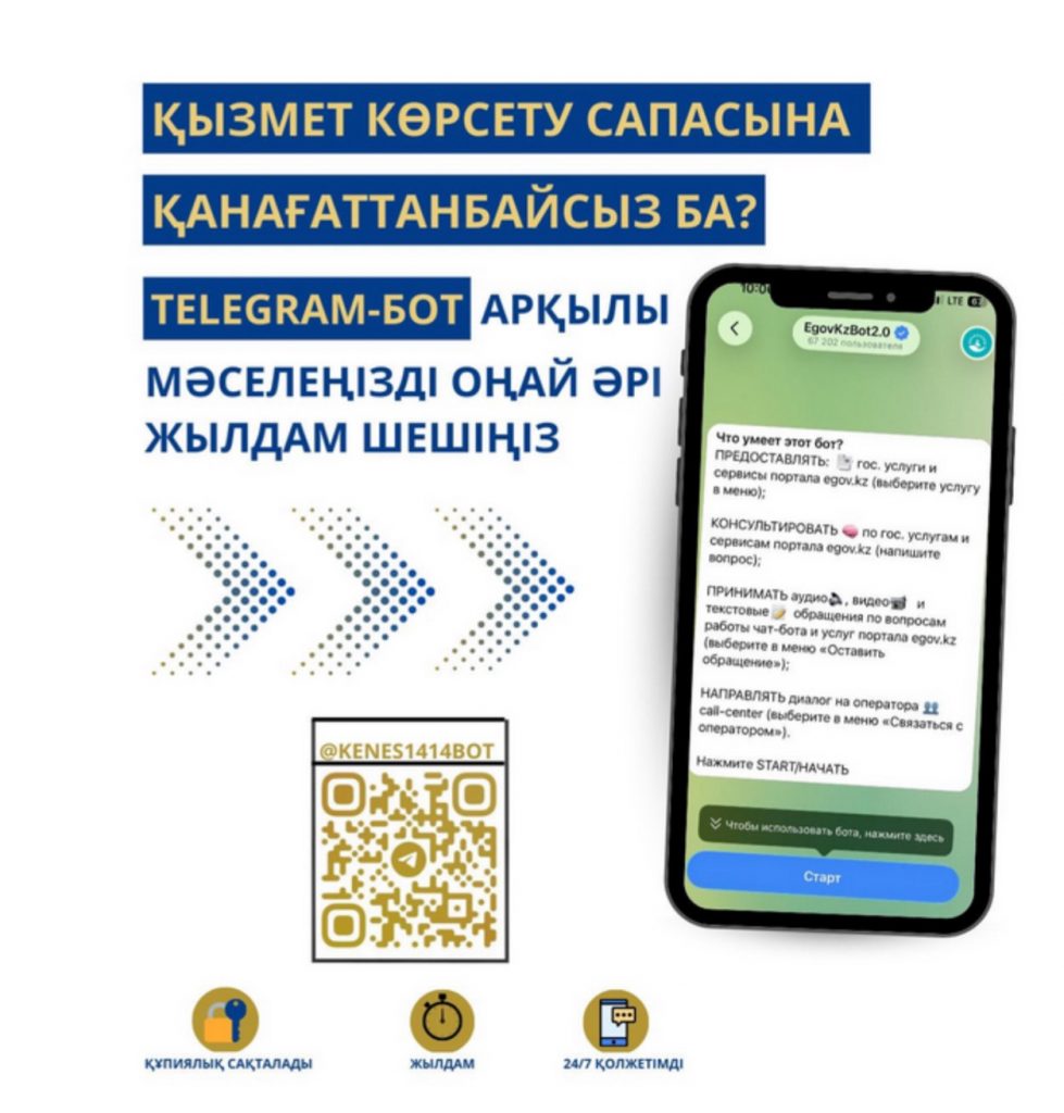 МЕМЛЕКЕТТІК КӨРСЕТІЛЕТІН ҚЫЗМЕТТЕРДІҢ САПАСЫНА TELEGRAM БОТ АРҚЫЛЫ ШАҒЫМДАНА АЛАСЫЗ