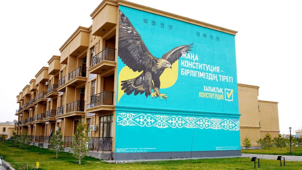 Түркістан қаласында Конституциялық реформаны қолдау мақсатында қоғамдық маңызы бар көркем жоба іске асырылды. Қаланың туристік аймақтарының бірі – «Керуен сарай» кешені аумағындағы тұрғын үйдің қасбетіне арнайы тематикалық мурал салынды.