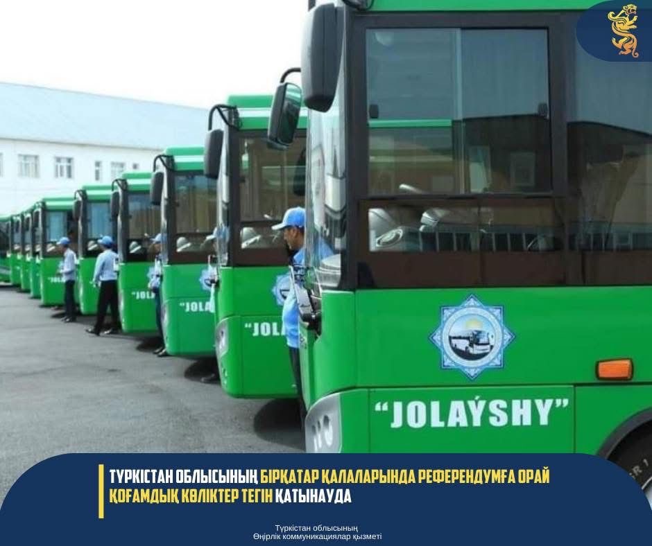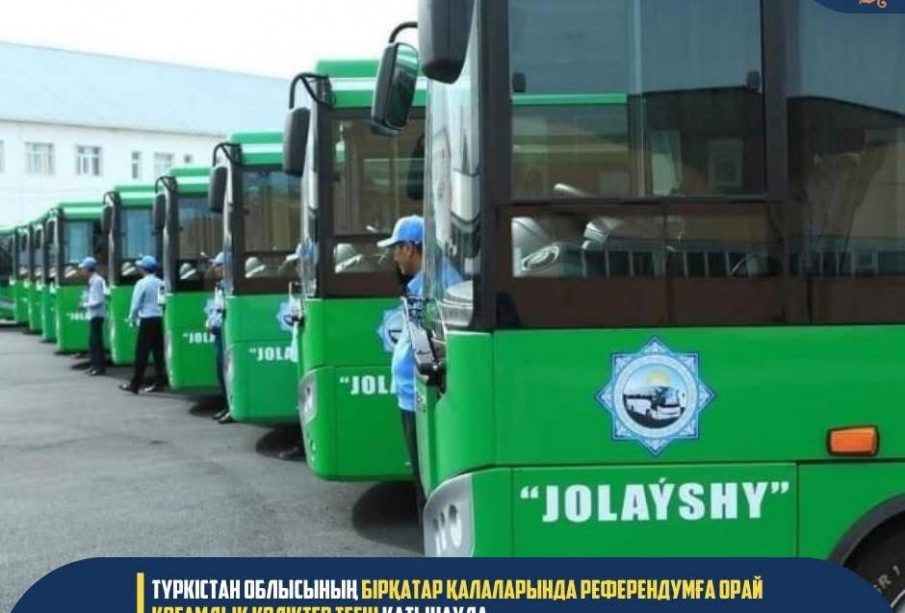 ТҮРКІСТАН ОБЛЫСЫНЫҢ БІРҚАТАР ҚАЛАЛАРЫНДА РЕФЕРЕНДУМҒА ОРАЙ ҚОҒАМДЫҚ КӨЛІКТЕР ТЕГІН ҚАТЫНАУДА