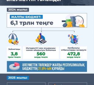 2024 жылы әлеуметтік қамсыздандыруға 5,4 трлн теңге бөлінді, оның ішінде зейнетақы төлеуге 3,8 трлн теңге қарастырылды. Барлық әлеуметтік төлемдерге (зейнетақылар мен жәрдемақылар) ...06.01.2025Қасым-Жомарт Тоқаев: «Мақсатым – экономиканы және егемендікті нығайту»