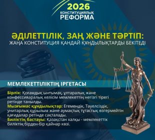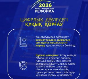 2026 жылғы Конституциялық реформа – Қазақстанның құқықтық және қоғамдық дамуындағы маңызды кезең. Жаңа Конституция әділеттілік, заң үстемдігі мен тәртіпті басты қағидаттар ретінде ...2026 жылғы Конституциялық реформа: Цифрлық дәуірдегі азаматтардың құқықтарын қорғау